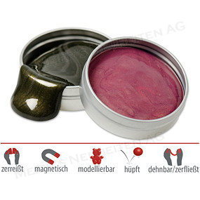 Einfach Wahnsinn, was diese Wunderknete alles kann. Mit einem Ruck zerreisst die Wunderknete wie Papier, zum Ball gerollt hüpft sie wie ein Flummi und per Hammerschlag zerspringt die Knete in viele kleine Teile. Aber das ist noch lange nicht alles langsam auseinander gezogen, dehnt sich die Knete wie Kaugummi. Die Wunderknete kann endlos geknetet und geformt werden und sie trocknet nie aus. Auch zum Stressabbau oder das Finger- und Handtraining bestens geeignet.