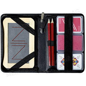 Jass-Etui mit Reissverschluss 1 Schiefertafel, 1 Schwamm, 2 Kreidestifte