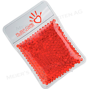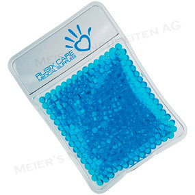 Flexibles, transparentes Kissen gefüllt mit Gelperlen. Für das therapeutische kühlen oder wärmen von Muskeln mit Gebrauchsanweisung.