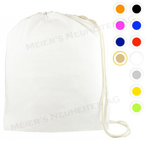 Bemerkungen: Universell verwendbarer Baumwollbeutel. Ob als Schuhsack im Reisegepäck oder als leichte Tasche für den Strand oder als Minirucksack irgendwo unterwegs. Dank der beiden Doppelkordeln lässt sich der Beutel tatsächlich auch auf dem Rücken tragen.