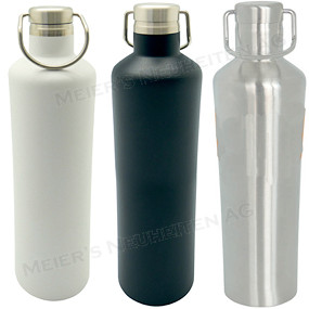 Bemerkungen: Im Winter warm, im Sommer kalt mit dieser doppelwandigen lackierten Edelstahl-Thermosflasche sind Ihre Getränke immer auf Betriebstemperatur. Die schlanke Form machen sie zu einem handlichen und praktischen Begleiter. Mit dem Drehverschluss und Haken kann sie irgendwo angehängt werden.