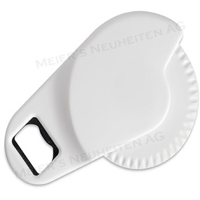 Pizzaschneider mit stabilem grossem Schneidrad und integriertem Flaschenöffner. Das Rad kann zur Säuberung einfach entnommen werden.