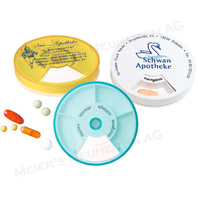 Drehpillendosen mit 1, 3, 4 oder 7 Fächern in opak oder gefrostet