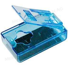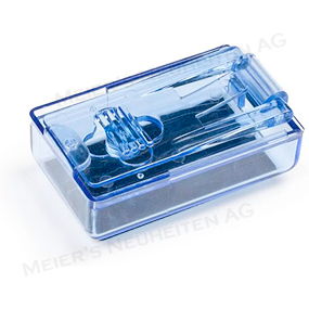 Bemerkungen: Mit diesem Entblisterer können Tabletten ohne Mühe aus der Verpackung gedrückt werden. Die Tablette wird mit der Verpackung über der Öffnung der Behälters plaziert. Durch drücken des Deckels wir die Tablette aus der Verpackung gestanzt und fällt in den Behälter. Nach dem Öffnen des Deckels kann die Tablette entnommen werden.