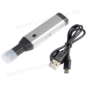 Dieses neuartige Lichtbogen-Feuerzeug kommt gänzlich ohne Gas aus. Mittels eines Lichtimpulses können Sie künftig ein Feuer entfachen. Der integrierte wiederaufladbare Akku wird über den USB-Anschluss aufgeladen. Voll geladen können Sie das Feuerzeug bis zu 50-mal benutzen. Angeliefert wird es zusammen mit dem benötigten USB-Ladekabel. |